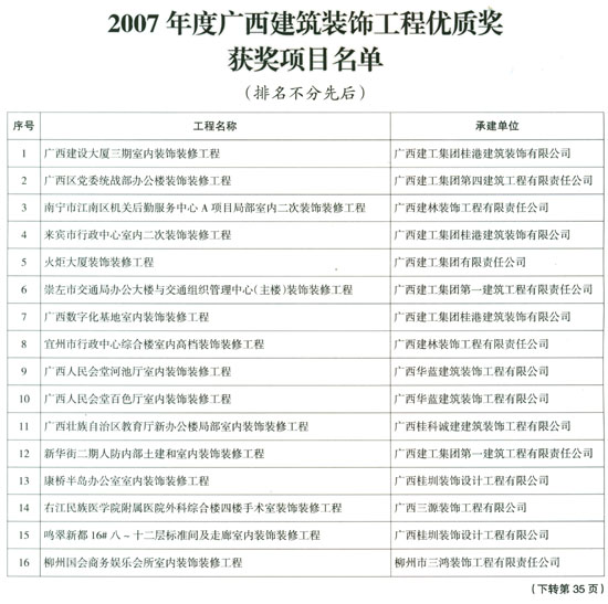 2008年10月24日,經(jīng)自治區(qū)建筑裝飾工程優(yōu)質(zhì)獎評審委員會評審,廣西桂科誠建建筑裝飾工程有限公司設計與承建的“廣西教育廳新辦公樓局部室內(nèi)裝飾裝修工程”項目榮獲“2007年度廣西建筑裝飾工程優(yōu)質(zhì)獎”。