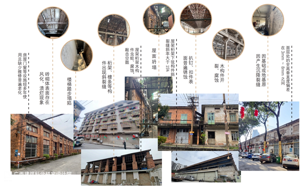 本項目所處區(qū)位和區(qū)域條件、外部交通條件均較為優(yōu)越。土地歸屬清晰,且現(xiàn)存有大量50-90年代工業(yè)廠房,具有較高的歷史文化價值。但是園區(qū)現(xiàn)狀態(tài)場地和建筑常年失修,局部破損嚴重。通過“修舊如舊”、“以改代拆”等原則,在研究歷史文化背景下,一方面,尊重原有建筑,保留城市記憶,延續(xù)廣西工業(yè)文化;另一方面,在保證安全可靠的基礎上更多的利用遺留資源,降低建設成本,縮短施工周期,提高土地利用率,優(yōu)化社會資源配置。