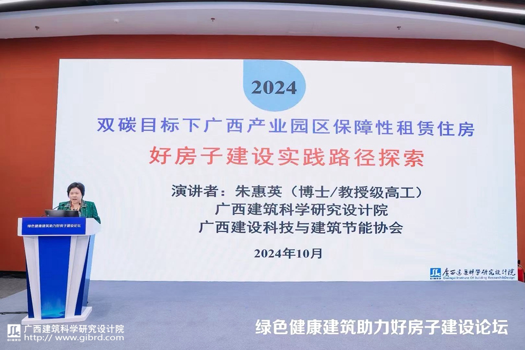 本次論壇圍繞“好房子”建設和“中國建造”高質量發展,設立了“科技賦能房屋安全與全生命周期管理論壇”“好房子好物業論壇”“綠色健康建筑助力好房子建設論壇”“高品質鋼結構好房子建造論壇”“新型標準體系賦能中國好住宅建設論壇”“新時代好房子建設實踐與百年住宅科技創新論壇”“數字家庭論壇”“智能建造和裝配式裝修論壇”8個平行論壇,從標準、科技、建設、服務等不同方面,以及數字智能、綠色健康等重點方向,探討行業發展前沿和實踐探索。我院顧問總工朱惠英博士在分論壇三“綠色健康建筑助力好房子建設論壇”發表主旨演講《雙碳目標下廣西產業園區保障性租賃住房好房子建設實踐路徑探索》。