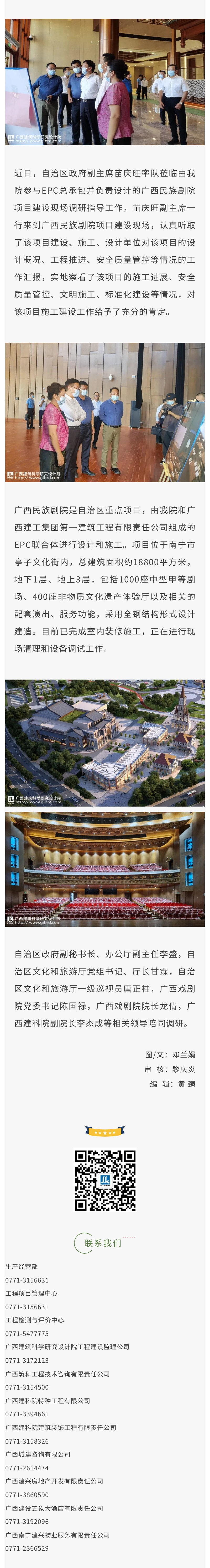 自治區政府副主席苗慶旺蒞臨我院設計的廣西民族劇院項目建設現場調研指導工作