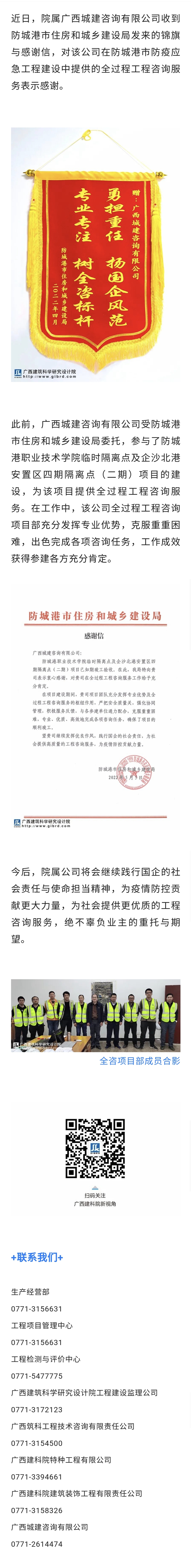 廣西城建咨詢有限公司收到防城港市住房和城鄉建設局發來的錦旗與感謝信