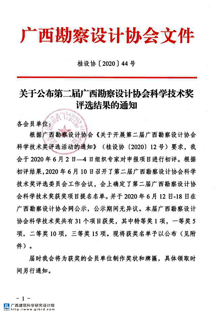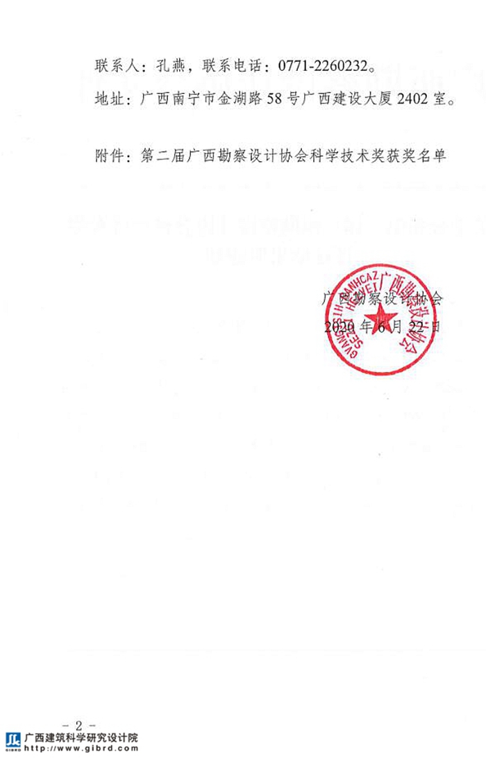 我院榮獲第二屆廣西勘察技術協會科學技術獎一等獎1項、三等獎1項