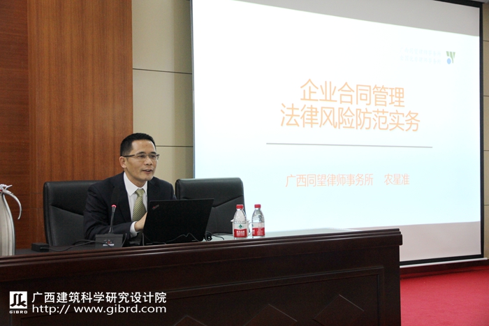 2019年3月7日,我院邀請到廣西同望律師事務(wù)所工程法律事務(wù)部主任農(nóng)星準(zhǔn)律師到我院為員工舉行了企業(yè)合同管理法律風(fēng)險(xiǎn)防范實(shí)務(wù)講座。