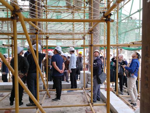 設(shè)計(jì)師鄧蘭娟介紹裝配式設(shè)計(jì)概況 通過(guò)本次裝配式建筑觀摩會(huì),與業(yè)內(nèi)專家領(lǐng)導(dǎo)分享了南寧城隍廟項(xiàng)目的裝配式建筑技術(shù)經(jīng)驗(yàn),本項(xiàng)目全部木石結(jié)構(gòu)的連接全部采用傳統(tǒng)木石結(jié)構(gòu)榫卯連接工藝,沒有一顆釘子和螺絲,承重木、石構(gòu)件中間沒有拼接,穿枋搭梁削弱截面均小于50%,使結(jié)構(gòu)滿足了抗震要求。這種遵循傳統(tǒng)技術(shù)又采用工廠化生產(chǎn)的裝配式設(shè)計(jì)、葫蘆收緊穿枋施工等特色拼裝技術(shù)等亮點(diǎn)得到了觀摩專家的充分肯定和贊許,專家們對(duì)項(xiàng)目建設(shè)也提出了寶貴的指導(dǎo)意見。 該項(xiàng)目是我院首次,也是廣西第一個(gè)采用裝配式建造技術(shù)設(shè)計(jì)建造的木石結(jié)構(gòu)仿古建筑項(xiàng)目,項(xiàng)目建設(shè)經(jīng)驗(yàn)的積累對(duì)我區(qū)乃至全國(guó)的木石結(jié)構(gòu)的裝配式設(shè)計(jì)建造具有重要的指導(dǎo)意義,項(xiàng)目建設(shè)的順利進(jìn)行充分體現(xiàn)了廣西建科院在建設(shè)領(lǐng)域的新技術(shù)推廣發(fā)展方面做出的不懈努力以及在技術(shù)上敢為人先的創(chuàng)新精神。