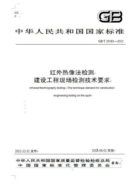 我院參編的中華人民共和國國家標(biāo)準(zhǔn)GB/T 29183—2012《紅外熱像法檢測建設(shè)工程現(xiàn)場通用技術(shù)要求》于2012年12月31日由國家質(zhì)量監(jiān)督檢驗(yàn)檢疫總局、國家標(biāo)準(zhǔn)化管理委員會批準(zhǔn),正式發(fā)布中華人民共和國國家標(biāo)準(zhǔn)公告2012年第41號,將于2013年6月1日起實(shí)施。