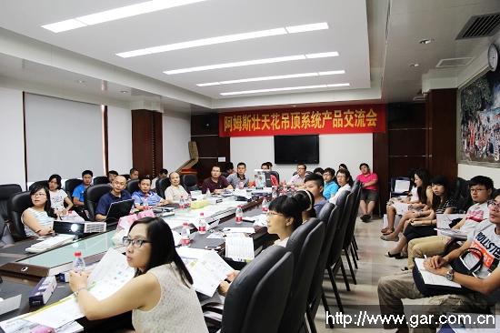 2012年8月23日,我院建筑裝飾設計所邀請阿姆斯壯(中國)投資有限公司到我院舉辦綠色建材產品交流會,全院設計人員約40人參與了此次交流會。 本次會議,阿姆斯壯公司技術人員著重講解綠色節能產品的特點及運用,尤其重點介紹該公司系列吊頂產品在吸音、防潮方面的優勢。會議中,廠家與我院設計師們就天花吊頂材料的特點及運用展開熱烈互動討論,會議達到預期效果,會議由建筑裝飾設計所龐耀國所長主持。