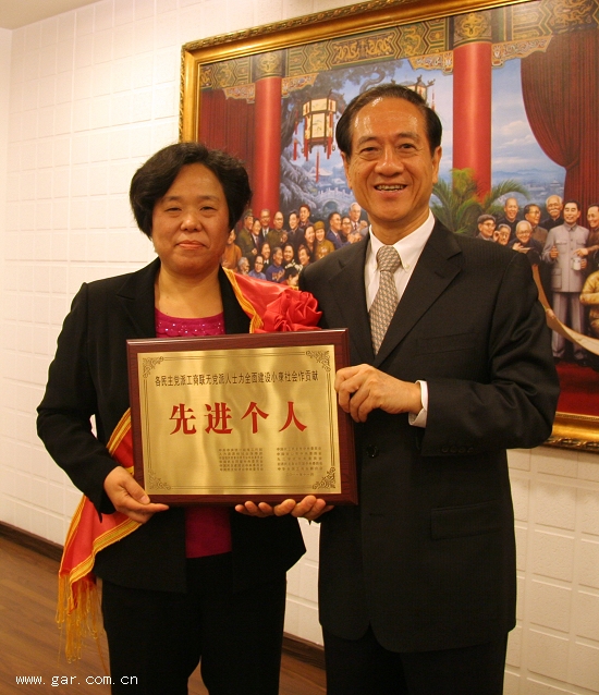 2011年11月30日上午,由中央統(tǒng)戰(zhàn)部、人力資源和社會(huì)保障部、各民主黨派中央委員會(huì)、中華全國(guó)工商業(yè)聯(lián)合會(huì)聯(lián)合發(fā)起的“各民主黨派、工商聯(lián)、無(wú)黨派人士為全面建設(shè)小康社會(huì)做貢獻(xiàn)表彰大會(huì)”在北京人民大會(huì)堂隆重舉行,中共中央政治局常委、全國(guó)政協(xié)主席賈慶林在會(huì)上親切接見(jiàn)了獲表彰的代表并做重要講話。中央統(tǒng)戰(zhàn)部杜青林部長(zhǎng),人力資源和社會(huì)保障部尹蔚民部長(zhǎng),全國(guó)人大常委會(huì)副委員長(zhǎng)、民革中央主席周鐵農(nóng),全國(guó)人大常委會(huì)副委員長(zhǎng)、民盟中央主席蔣樹(shù)聲,全國(guó)人大常委會(huì)副委員長(zhǎng)、民建中央主席陳昌智,全國(guó)政協(xié)副主席、民進(jìn)中央常務(wù)副主席羅富和,全國(guó)人大常委會(huì)副委員長(zhǎng)、農(nóng)工黨中央主席桑衛(wèi)國(guó),致公黨中央常務(wù)副主席王欽敏,全國(guó)人大常委會(huì)副委員長(zhǎng)、九三學(xué)社中央主席韓啟德,全國(guó)政協(xié)副主席、九三學(xué)社中央副主席王志珍,全國(guó)政協(xié)副主席、臺(tái)盟中央主席林文漪,全國(guó)政協(xié)副主席、全國(guó)工商聯(lián)主席黃孟復(fù),無(wú)黨派人士、衛(wèi)生部部長(zhǎng)陳竺等46位領(lǐng)導(dǎo)同志出席表彰大會(huì)。中央統(tǒng)戰(zhàn)部杜青林部長(zhǎng)在會(huì)上做了重要講話。30日晚上的央視新聞聯(lián)播報(bào)道了此次表彰大會(huì)的盛況。