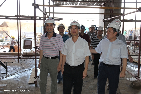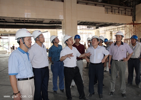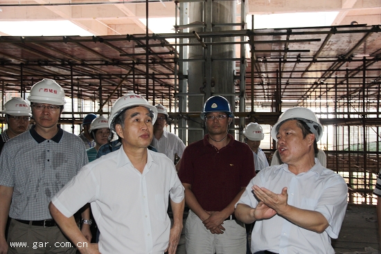 2011年9月8日,中秋前夕廣西住建廳嚴世明廳長及設計處處長楊棟、規劃處副處長梁立新等來到位于五象新區的“廣西城市規劃建設展示館”工地,慰問廣大職工并指導工作。在工地現場,廣西城投公司董事長龐文達向嚴廳長詳細匯報了項目的進展情況,嚴廳長針對項目的進展情況作出了相應的工作指示和建議。嚴廳長充分肯定了項目建設進展,要求進一步加快建設進度,向自治區第十次黨代會獻禮。在隨后的項目進展匯報會上,我院監理公司總經理陳群毓向嚴廳長和龐董事長匯報了該工程的監理情況,最后嚴廳長祝大家中秋節日快樂。