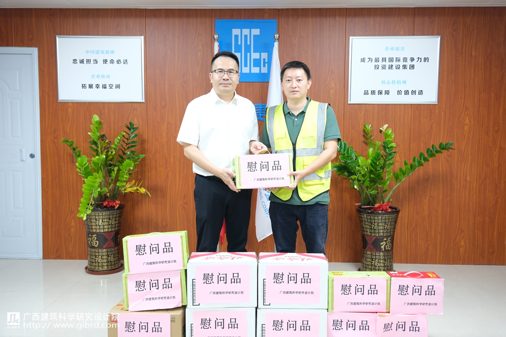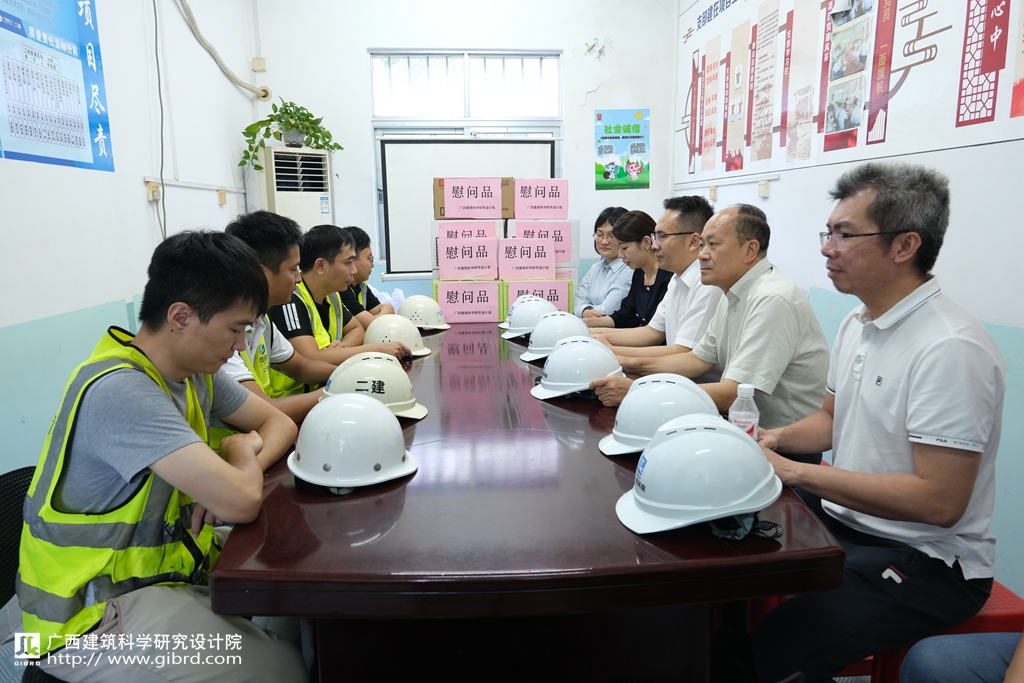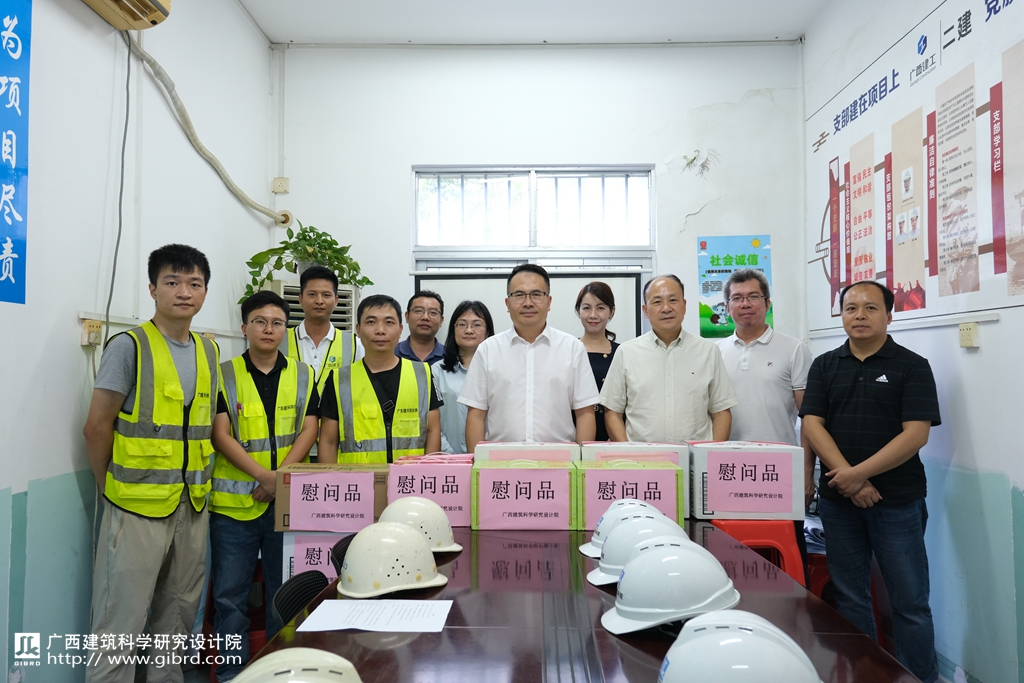 慰問組先后來到我院的兩個工程檢測項目“廣西黨員干部廉政教育基地二期建設工程檢測”及“廣西高級人民法院南寧市古城路47號宿舍區危舊房改住房改造項目”工地現場,與一線技術人員開展面對面交流,并給他們送上慰問品,傳遞組織的關懷與溫暖。