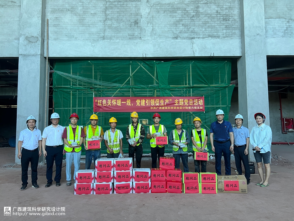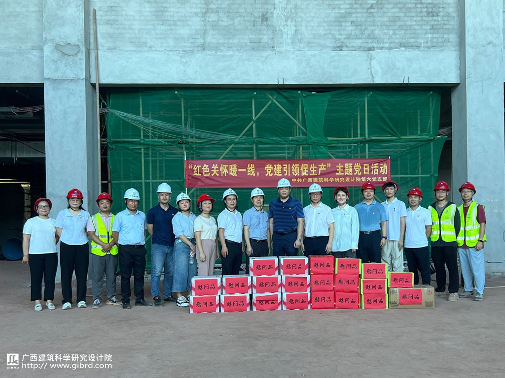 為慶祝中國共產(chǎn)黨成立104周年,深化黨建與業(yè)務(wù)高度融合,發(fā)揮基層黨支部戰(zhàn)斗堡壘作用,6月25日,我院第六黨支部全體黨員走進(jìn)由院下屬工程技術(shù)公司承建的“廣西防城港市白沙灣國際醫(yī)學(xué)園區(qū)”加固改造工程項(xiàng)目一線,開展“紅色關(guān)懷暖一線、黨建引領(lǐng)促生產(chǎn)”主題黨日活動(dòng)。副院長許維超以分管院領(lǐng)導(dǎo)和支部普通黨員雙重身份參加此次活動(dòng)。活動(dòng)特邀了院總工程師李華紅、黨委辦公室主任黎慶炎參加。