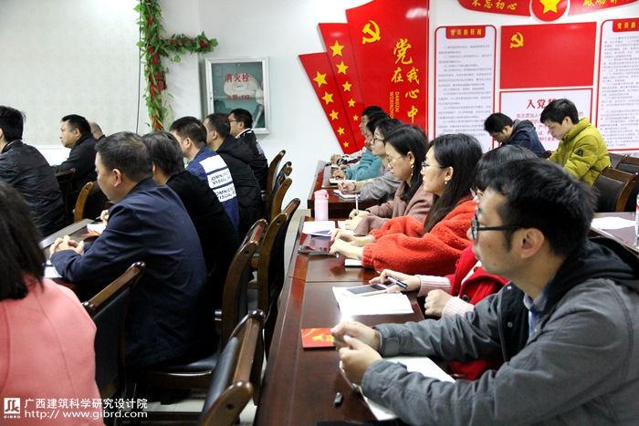 為了深入學習貫徹黨的第十九屆四中全會精神,落實我院關于開展“不忘初心、牢記使命”主題教育的工作計劃,中共廣西建筑學研究設計院第三支部委員會組織廣西建科建筑工程質量檢測與評價有限責任公司中層及以上領導、全體黨員召開了學習貫徹黨的第十九屆四中全會精神會議。