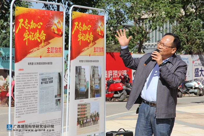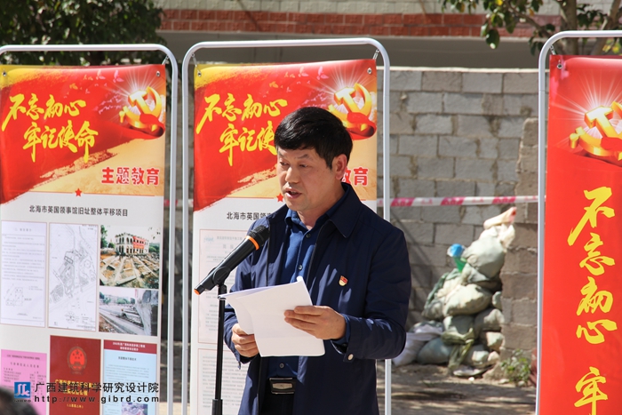 29日上午的邕城,秋意綿綿,天空湛藍,艷陽高照。此次上黨課的地點選擇在我院完成的明秀路180號民房糾偏項目原址,與“不忘初心、牢記使命”主題教育的目的相契合,體現(xiàn)了我院“黨建促業(yè)務(wù),業(yè)務(wù)強黨建”的經(jīng)營管理理念。黨課活動邀請了我院原副總工程師楊贊琳和副院長李杰成分別向大家介紹北海市原英國領(lǐng)事館平移項目、明秀路180號民房糾偏項目的相關(guān)情況。