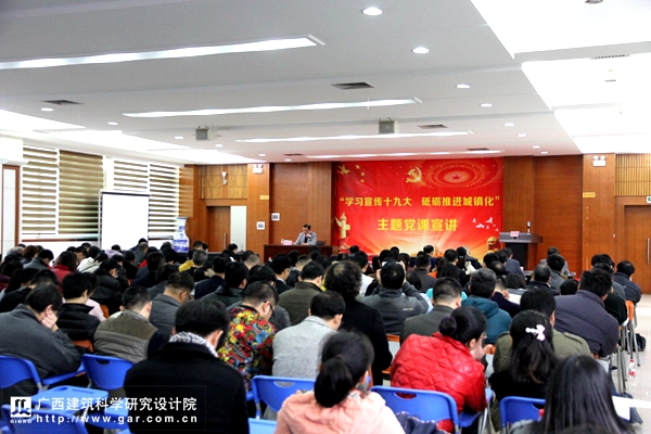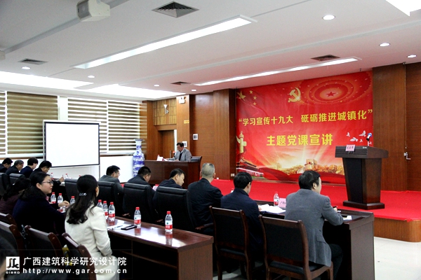 根據(jù)《自治區(qū)住房城鄉(xiāng)建設(shè)廳關(guān)于開展“學(xué)習(xí)宣傳十九大 砥礪推進(jìn)城鎮(zhèn)化”主題黨課宣講活動(dòng)的通知》精神,由我院黨委牽頭組織此次主題黨課活動(dòng),廳機(jī)關(guān)第三黨支部、廣西墻改辦黨支部的全體黨員、我院全體黨員以及中層以上干部參加宣講活動(dòng)。